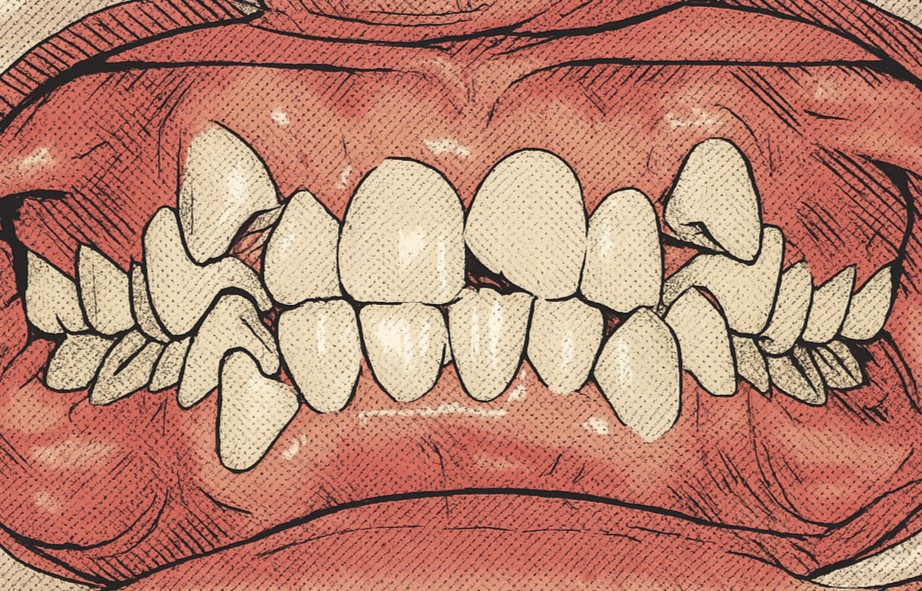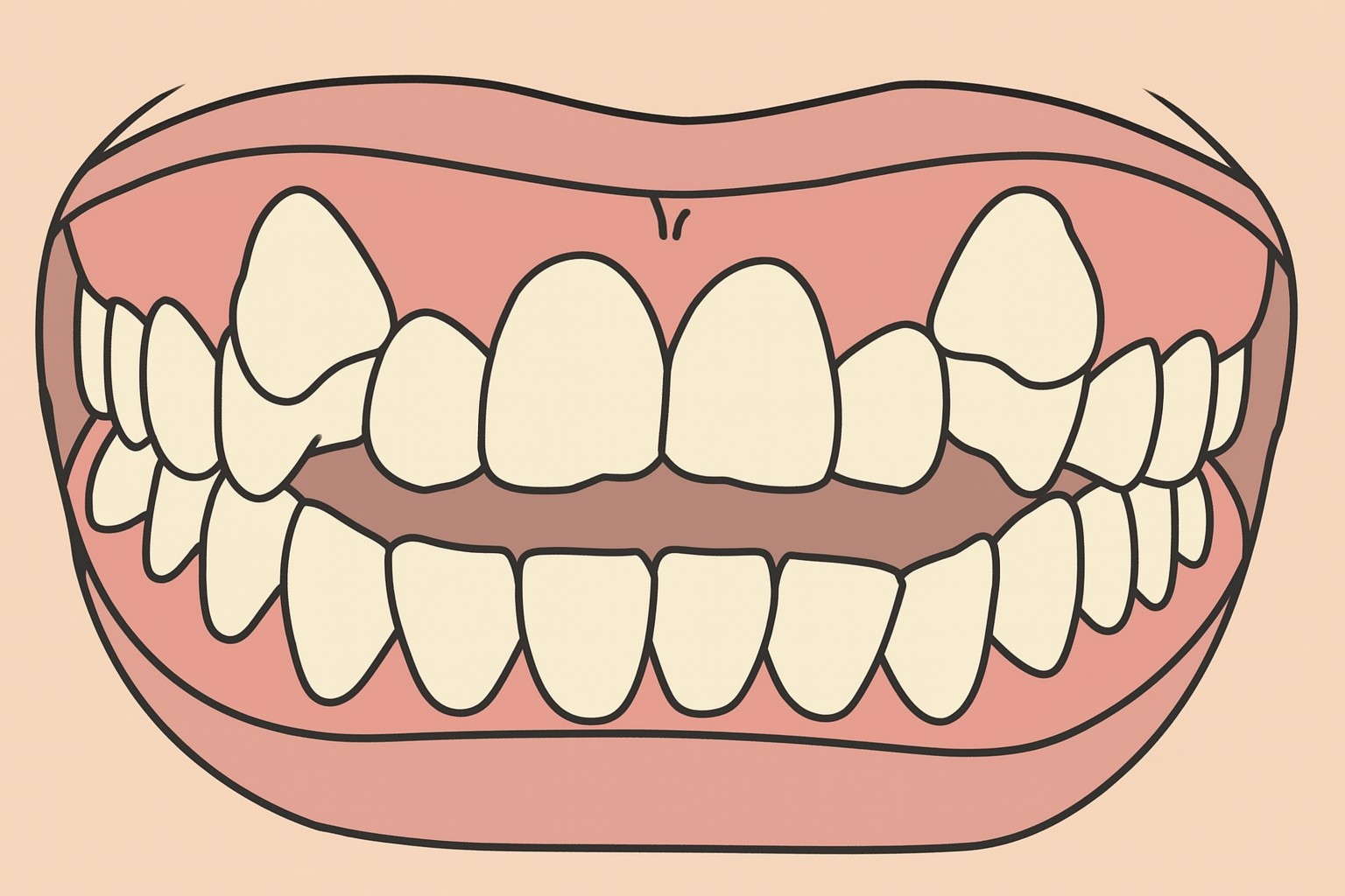 歯が大きかったりあごが小さかったりして両者のバランスが悪い人では、前歯のでこぼこが見られます。